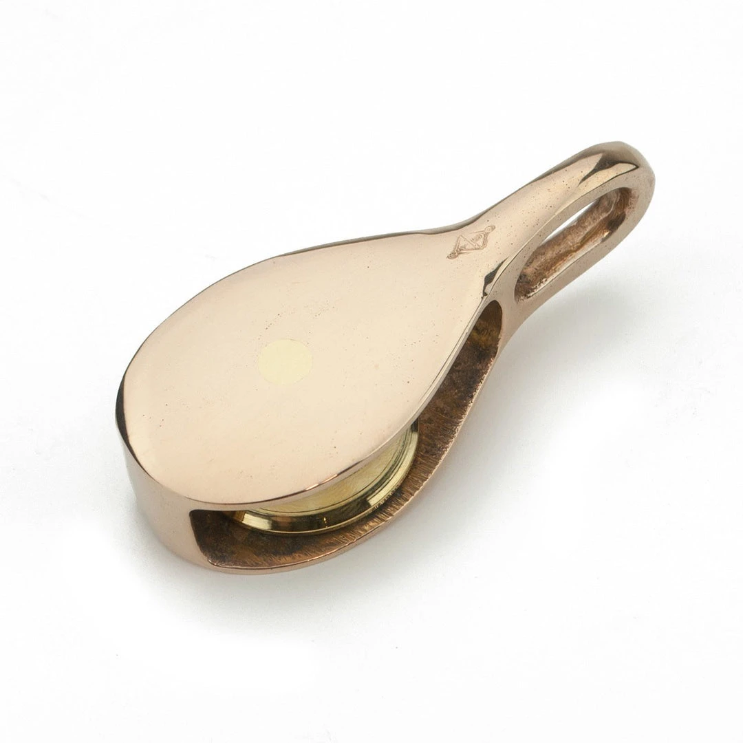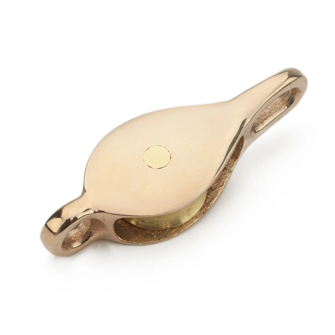 A stunning all metal block with a polished cast bronze shell and eye, fitted with a turned brass sheave.