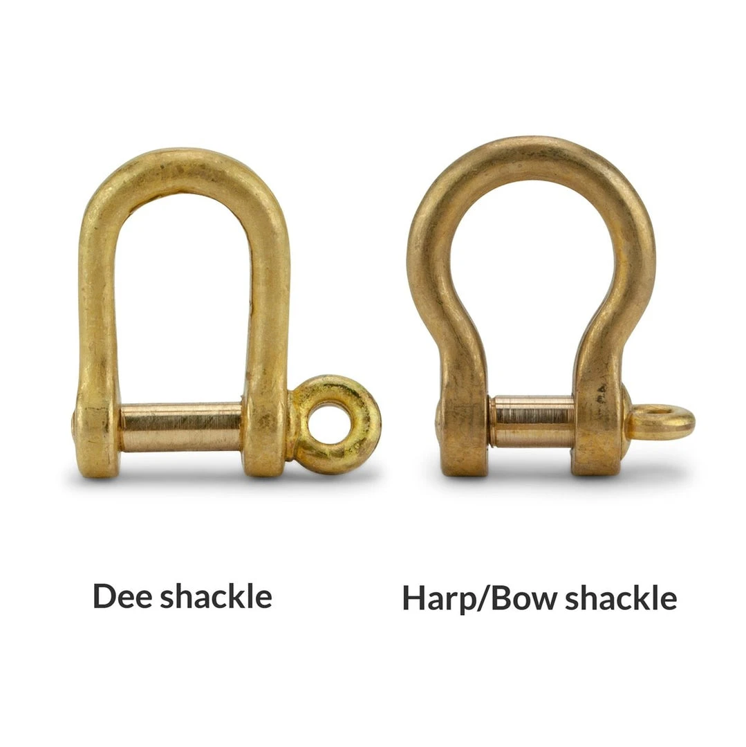 Available as a straight-sided D-shackle, or curved body Harp shackle, also known as a Bow shackle.