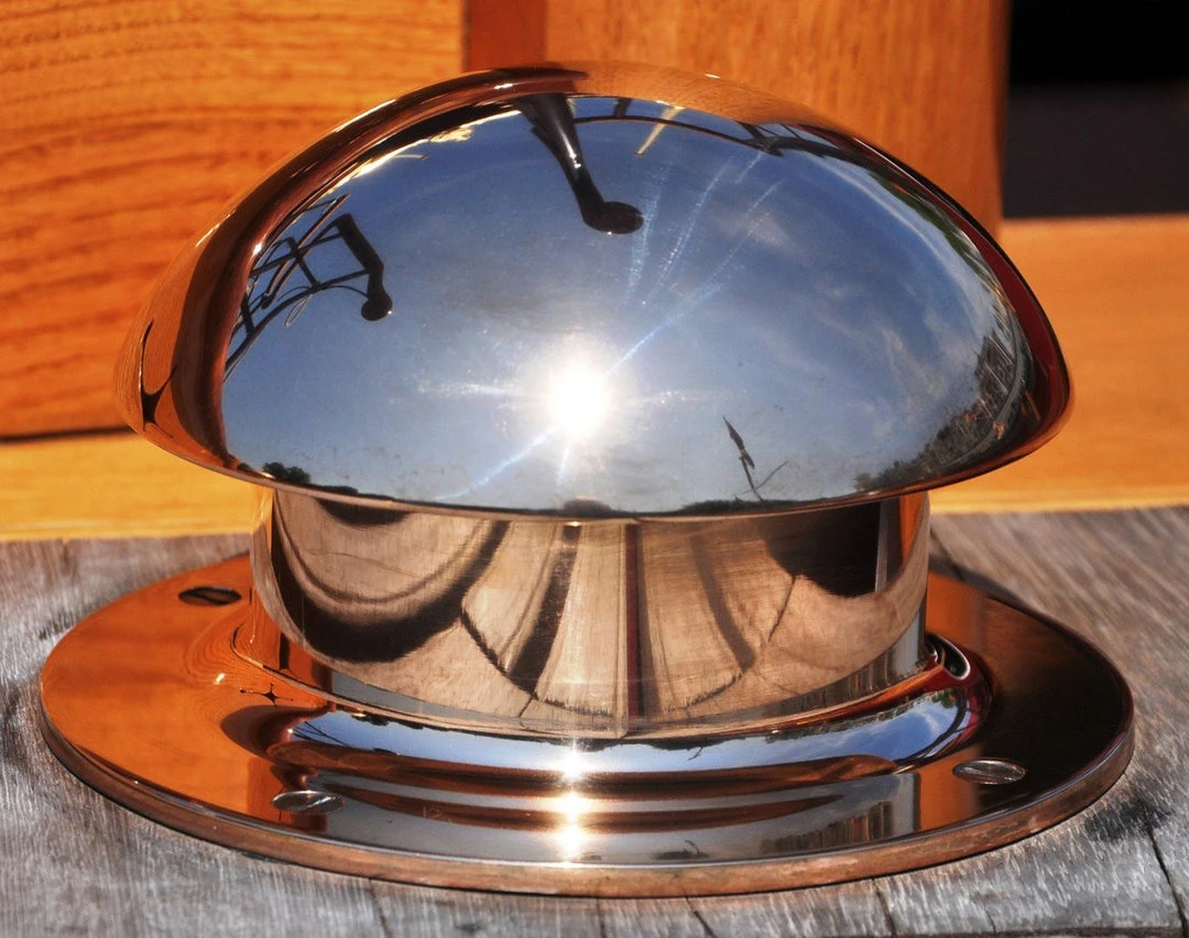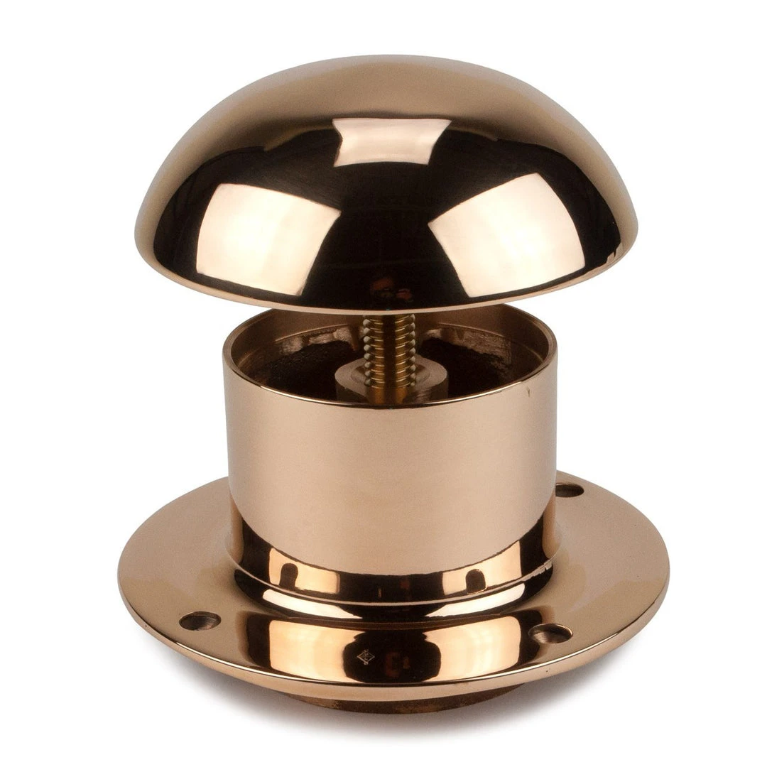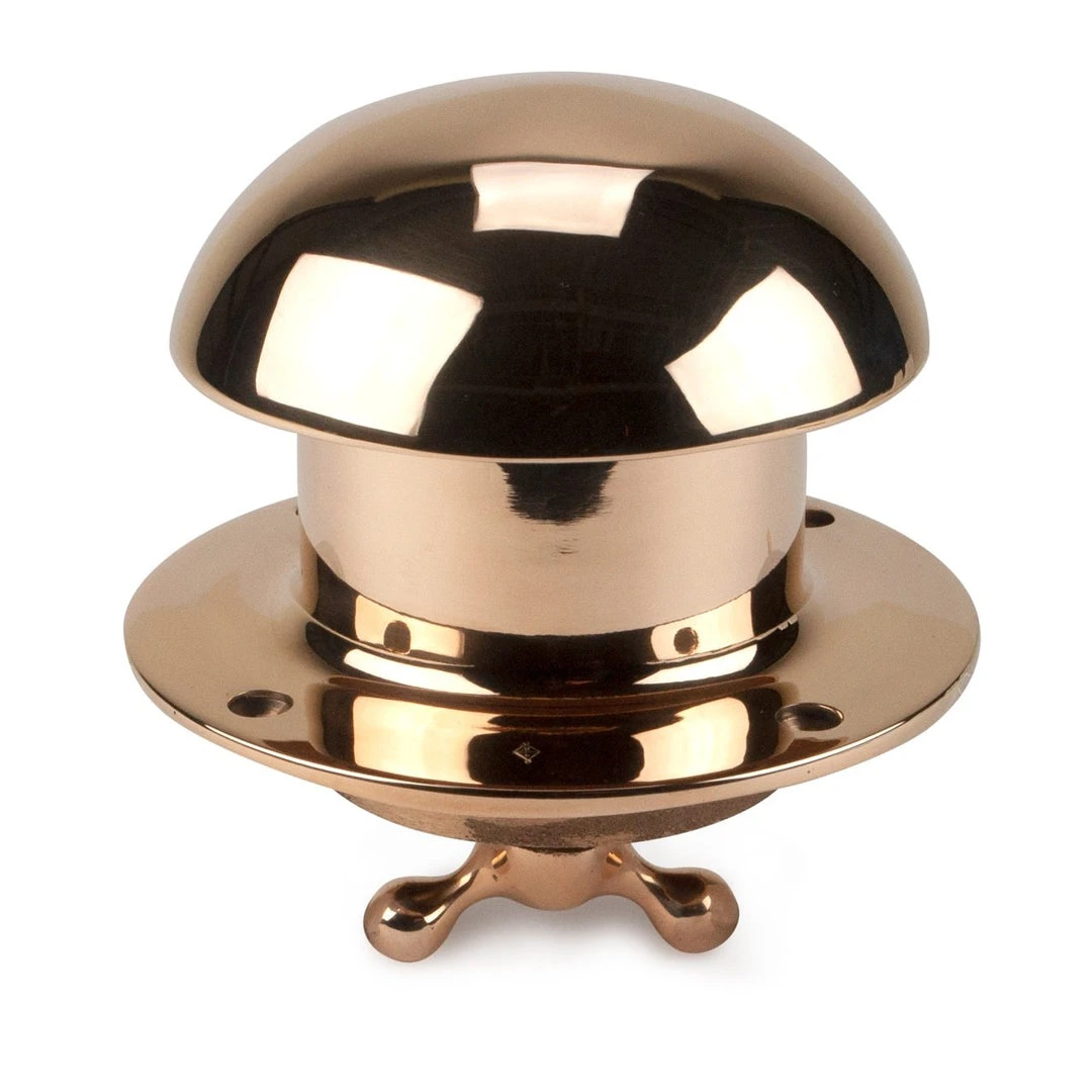 Manufactured in stunning bronze, the high pattern vents are for deck areas that need added water protection. The high-pattern mushroom ventilator has a through-deck spigot, inner neoprene seal, and a T-handle for opening and closing.