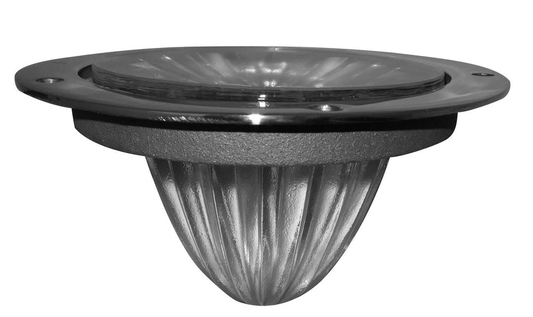 In these solid-glass prisms with deep bronze frames for thinner decks, such as steel, aluminium or fiberglass, the frame is fixed to the deck first and the glass is then set into the frame from the top.