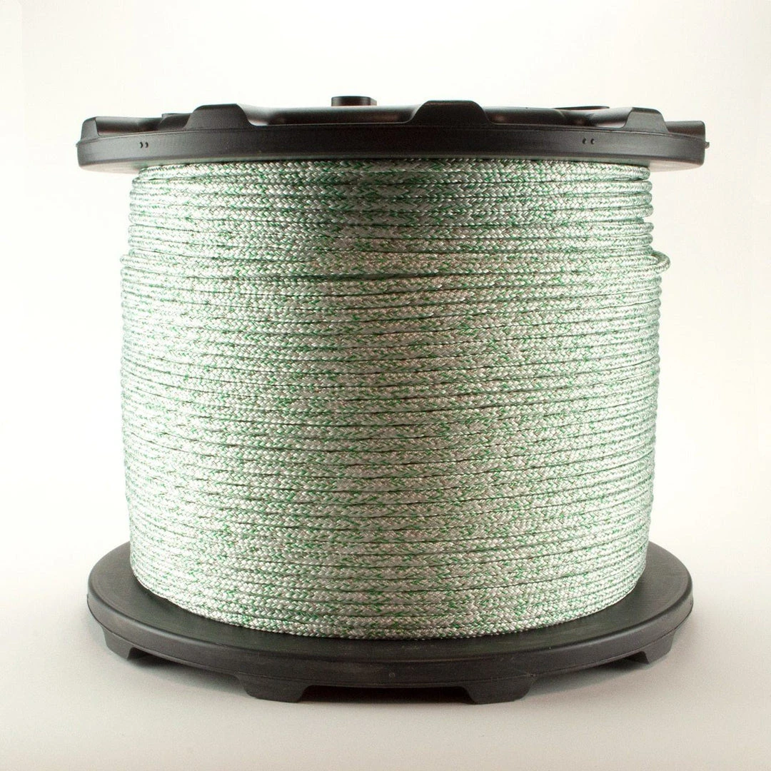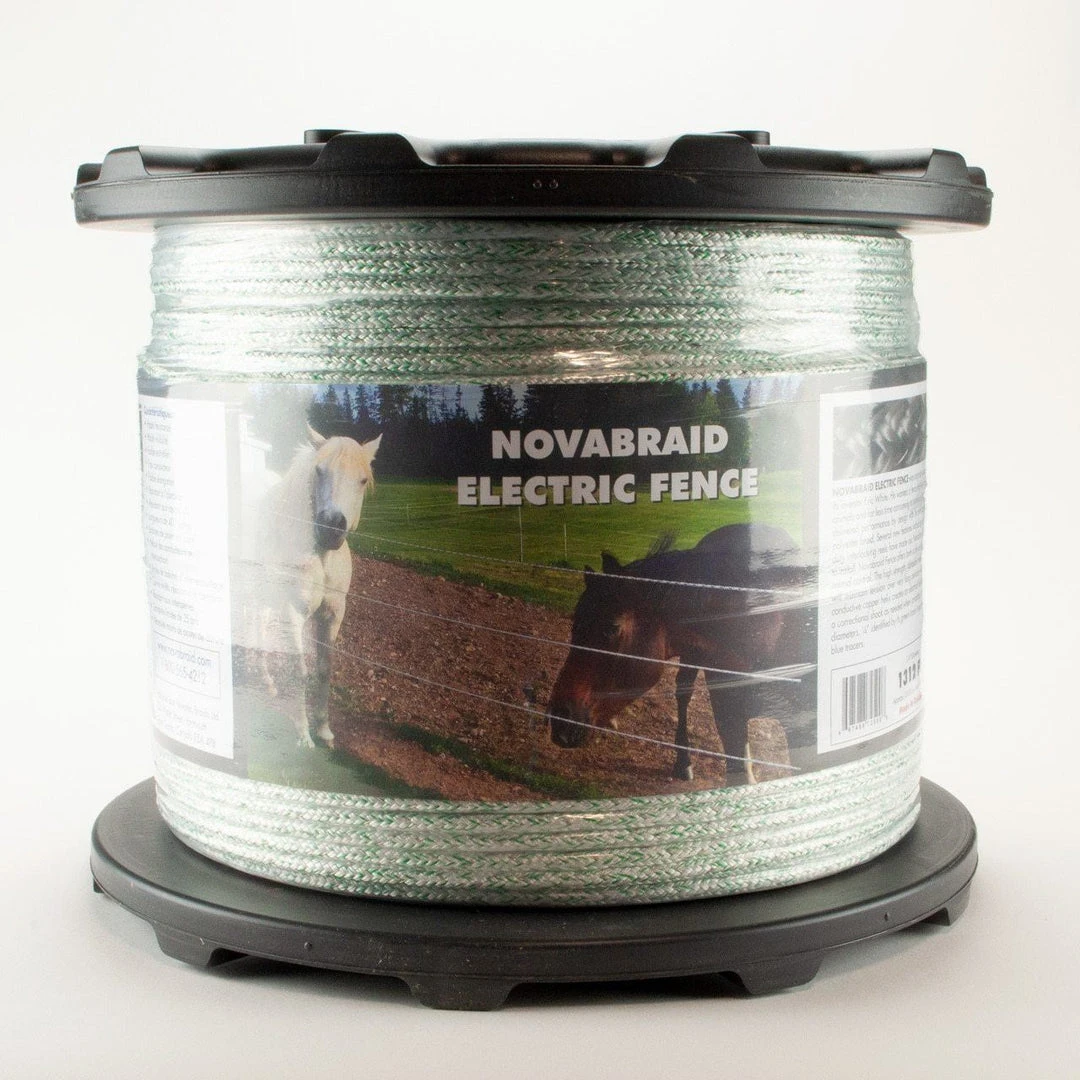 Novabraid Electric Fence is available in two diameters, 1/4” identified by its green tracer in each twisted cover strand and 1/8” with blue tracers. Each reel contains 1312 ft. (400m) of fencing. Please note: this product is NOT available in cut lengths, and ships only as a full spool.