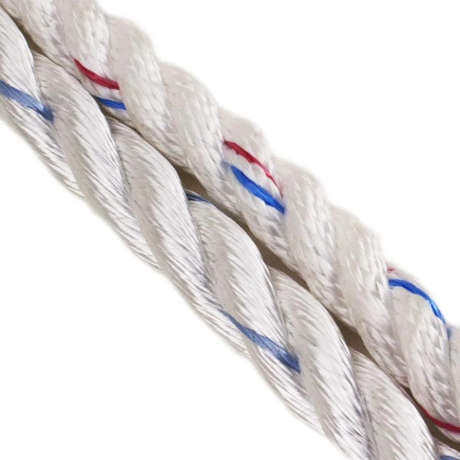 PolyDac 3-Strand is a popular and very stable combination rope. High density polyester over a polyethylene core. Great UV resistance, 100% resistant to rot or mildew even if stored wet. Excellent abrasion resistance, strength and lower stretch than nylon rope.