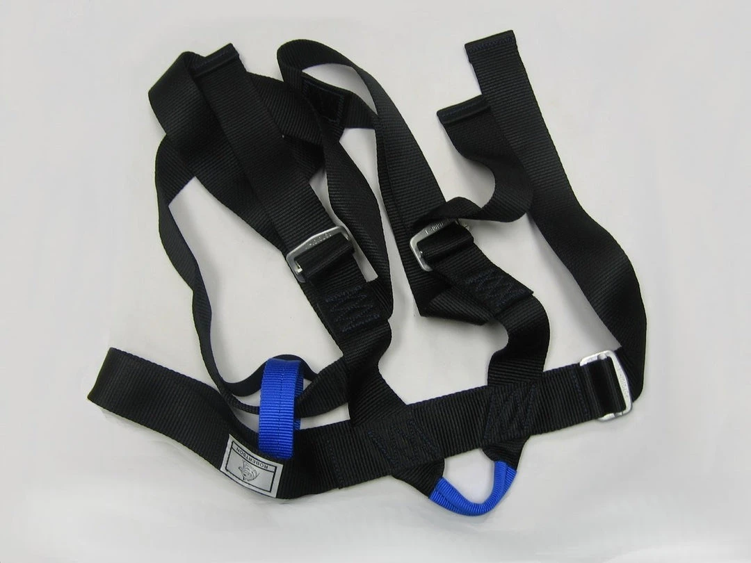 The Robertson Cypress seat harness is made of high quality webbing and perfect for amateur and expert applications. It’s available in three sizes – Small (black with red accents), Medium (black with blue accents), and Large (black with gray accents). Reference photo shows a Medium harness.